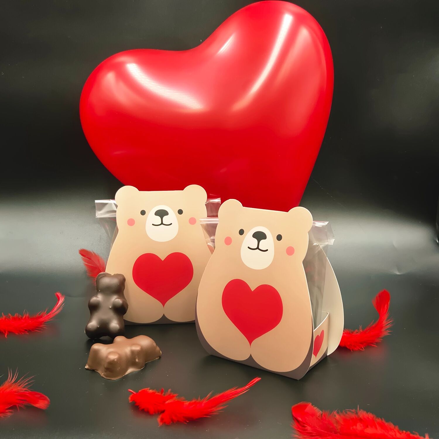 6 oursons guimauves, en chocolat noir et lait dans son étui super mignon pour faire fondre le coeur de votre dulciné(e) !