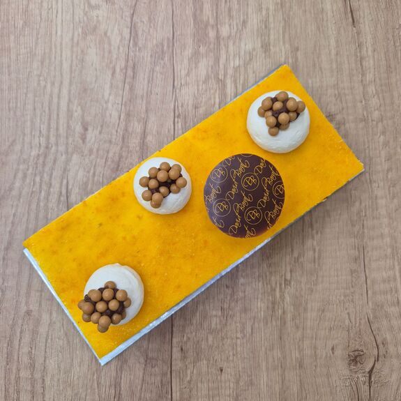 Un entremet gourmand aux accents du Sud, une déclinaison de mandarine (en crémeux, en confit et en gelée) associé à la gourmandise du spéculoos et l'onctuosité de la mousse de cheesecake : à essayer absolument !