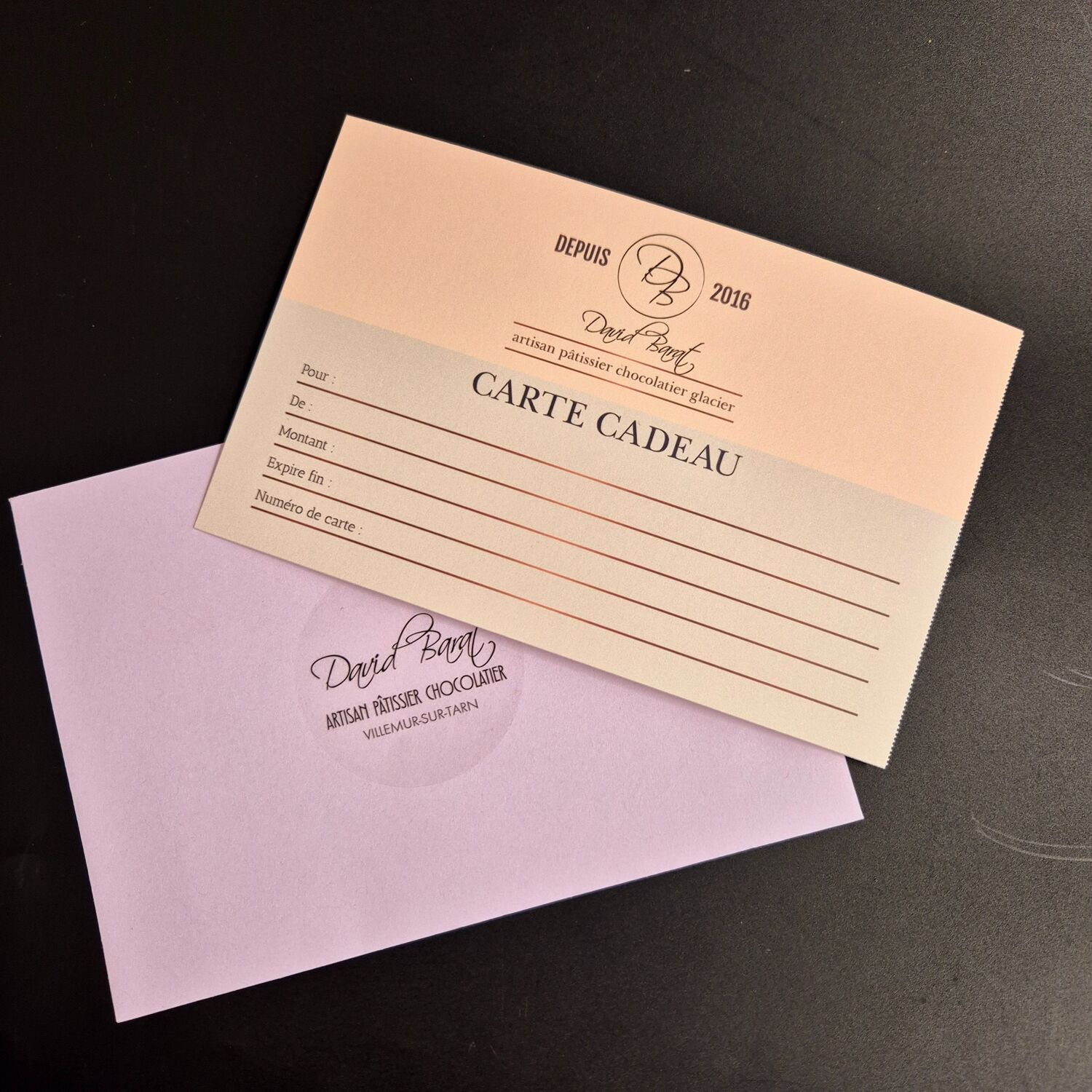 En manque d'inspiration ou d'information en ce qui concerne les goûts de vos proches ? Nous pouvons vous aider grâce à notre chèque cadeau de la valeur que vous souhaitez et valable dans notre boutique sur toute la gamme de gâteaux, de chocolats ou encore de salés ou de glaces.