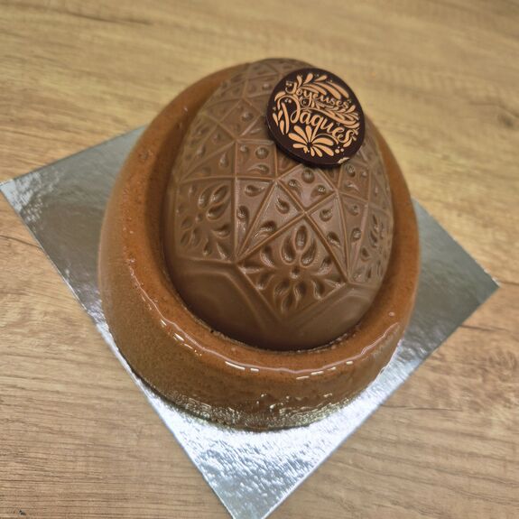 Un entremet aux saveurs incontournables pour Pâques : chocolat et coeur praliné. Parfaitement dans le thème, de par sa forme, il séduira tous les amateurs de chocolats !!!